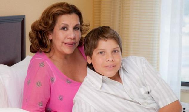 Ο μικρός πόζαρε γεμάτος αυτοπεποίθηση ενώ η 50χρονη μητέρα του τον κρατούσε πραστατευτικά από τον βραχίονα. Η ίδια ήταν ντυμένη με ένα χαρούμενο ροζ μπλουζάκι.