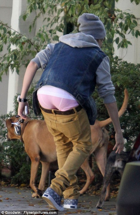 Ο Justin έβγαλε βόλτα τον σκύλο του και φορούσε χαμηλοκάβαλο τζιν παντελόνι. Όμως την ώρα που έσκυψε οι παπαράτσι καραδοκούσαν και απαθανάτισαν το ροζ (εντελώς ροζ όμως) εσώρουχό του και τα σχόλια στο Διαδίκτυο για τα...κοριτσίστικα γούστα του Justin πέφτουν βροχή