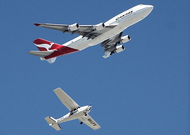 747 της Qantaw ένα μικρό Cessna κατά τη διάρκεια μιας συγκεκριμένης
