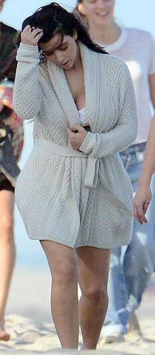 Η γνωστή τηλεπερσόνα όση ώρα δεν εργαζόταν, δηλαδή ανάμεσα στα διαλείμματα της φωτογράφισης, σκέπαζε σώμα της με μία χαλαρή ζακέτα με την οποία έκρυβε την κοιλιά της αλλά και τις καμπύλες της.