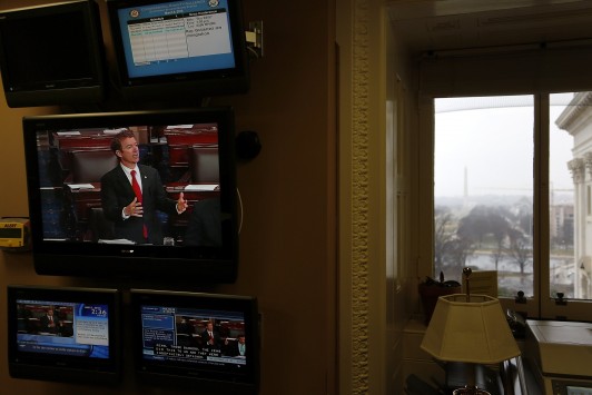 Επειτα από πέντε ώρες, ο αρχηγός των Δημοκρατικών στην Γερουσία Χάρι Ρέιντ προσπάθησε να βρει μια συμβιβαστική λύση: ακόμα 90 λεπτά ομιλίας, μετά ψηφοφορία.
